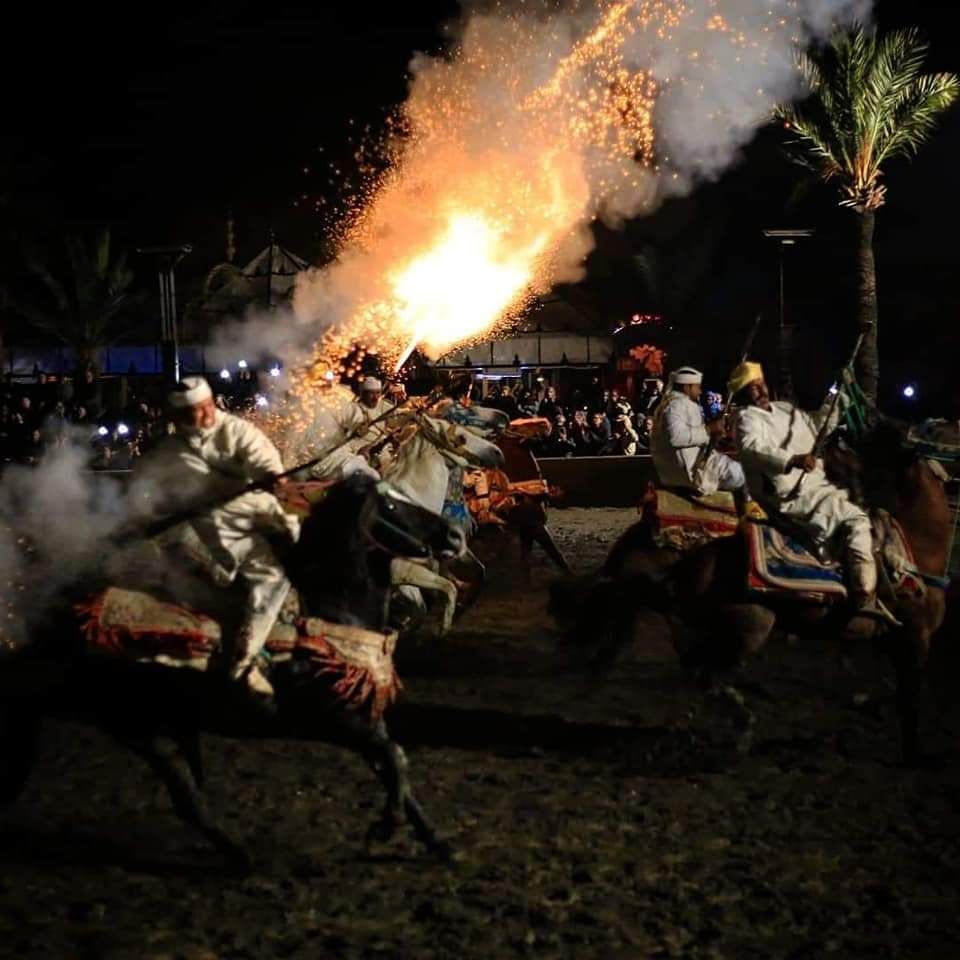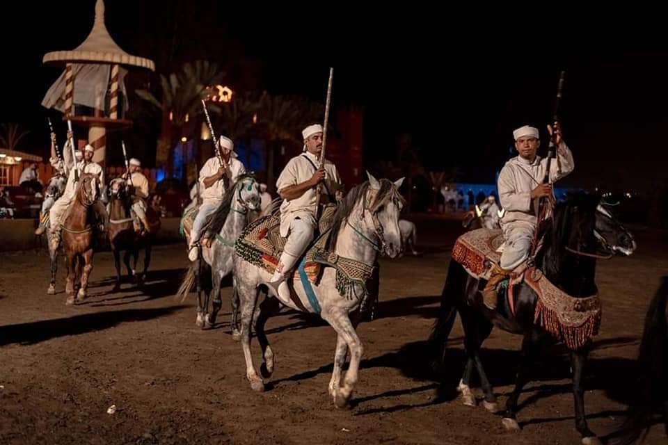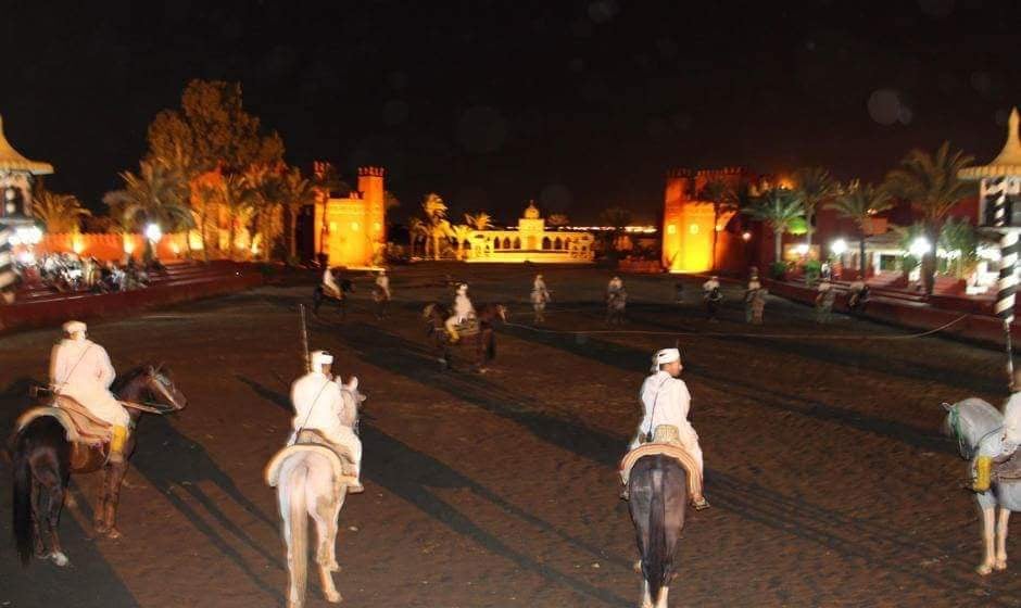 Chaque soir, cavaliers, musiciens, danseurs et feux d’artifice se mettent en scène pour un spectacle magnifique de fantasia.